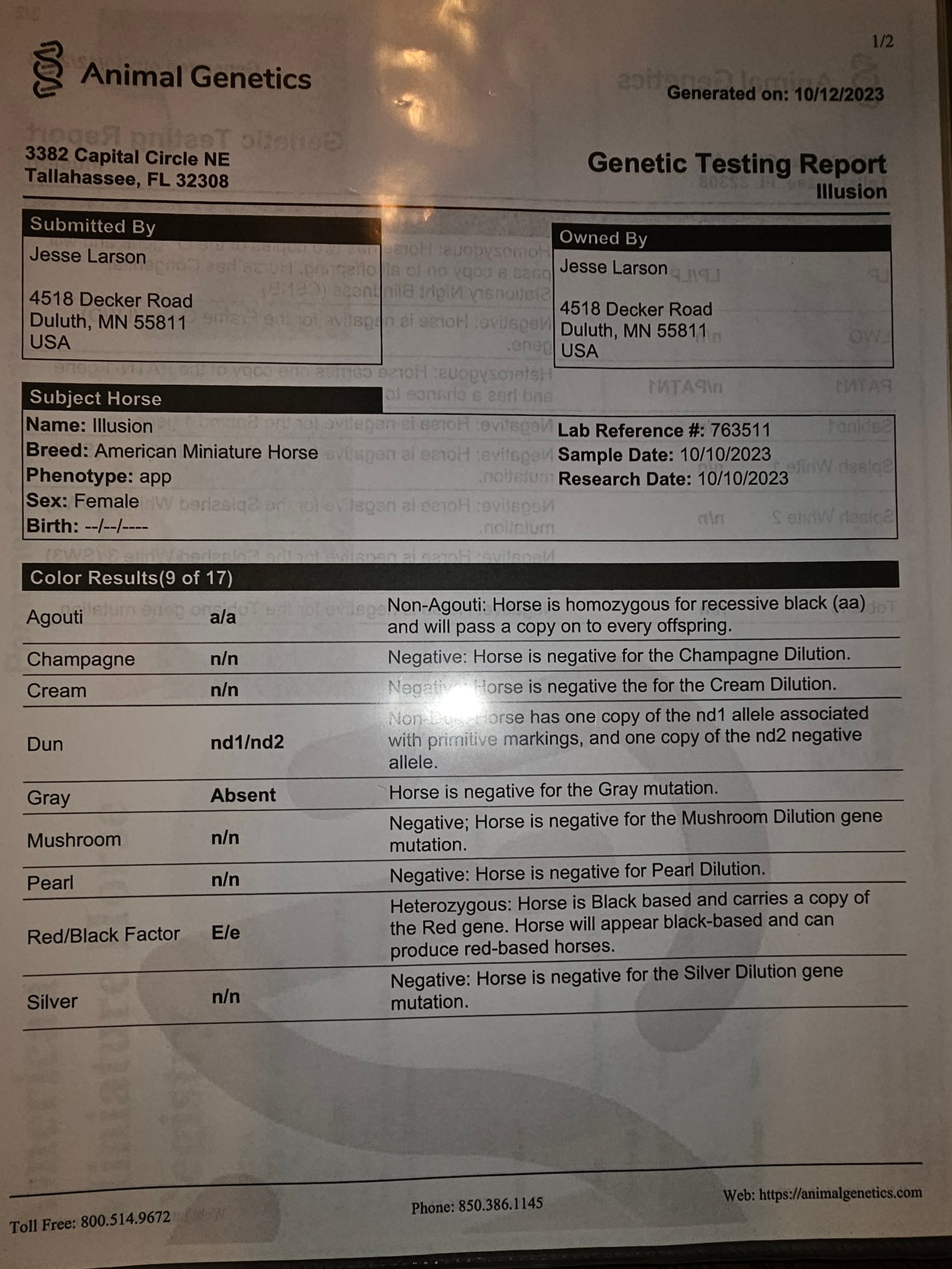In the fall she was with No Spots on Me, he is our homozygous appaloosa stallion.