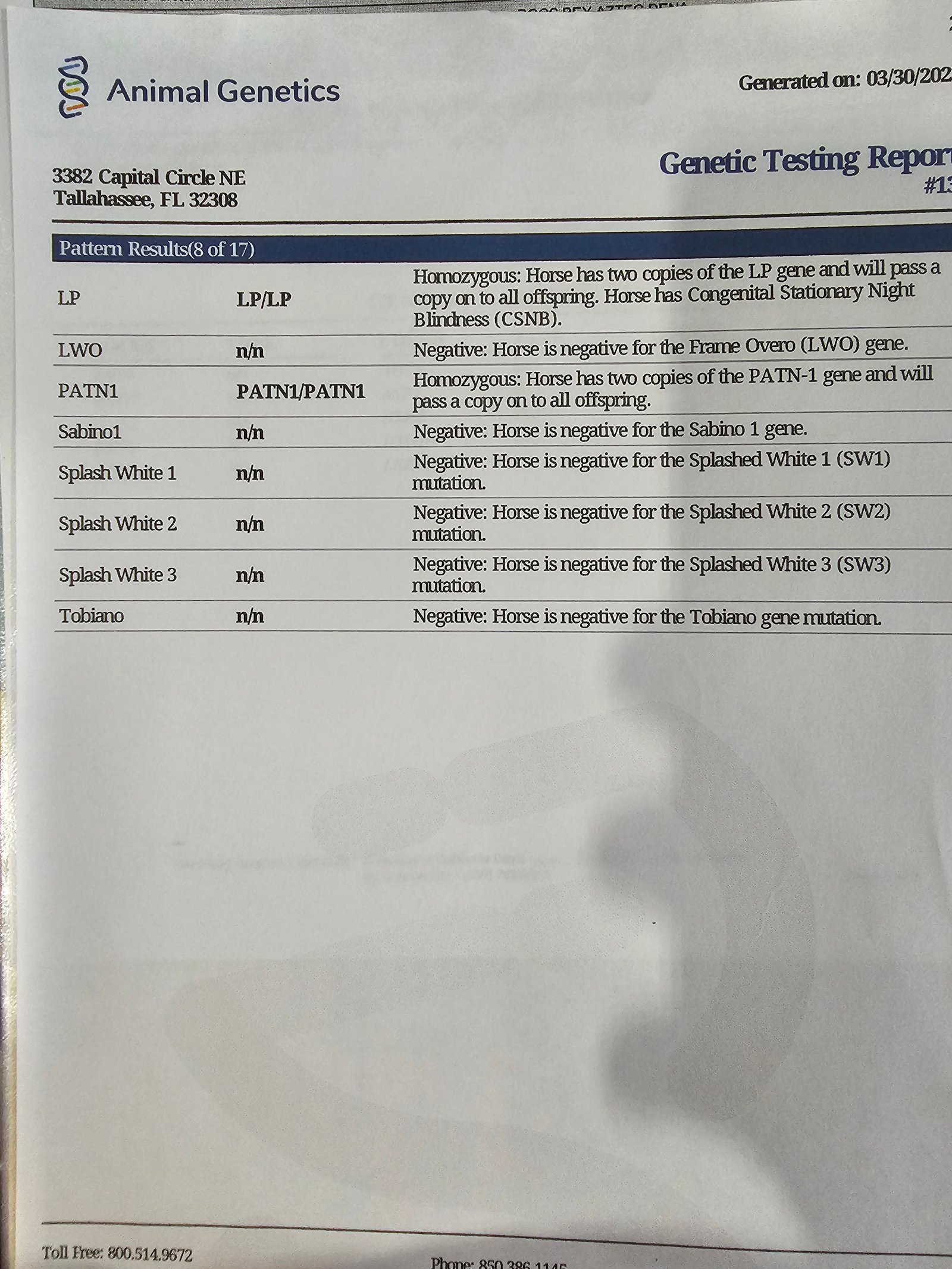 In the fall she was with No Spots on Me. He too is homozygous appaloosa.