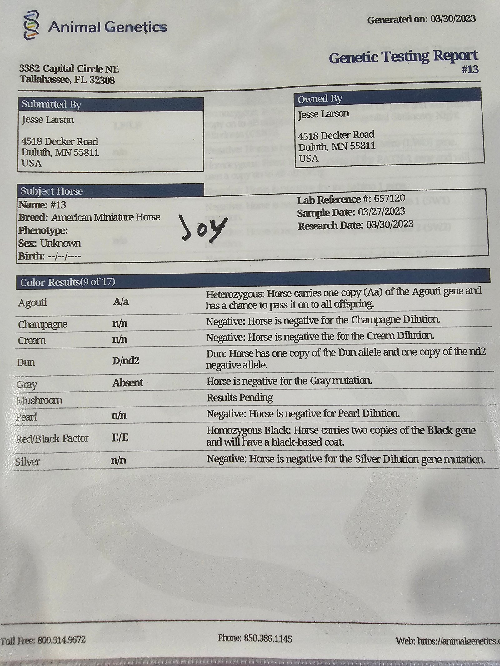 In the summer of 2023 joy was with Thunder, also homozygous appaloosa.